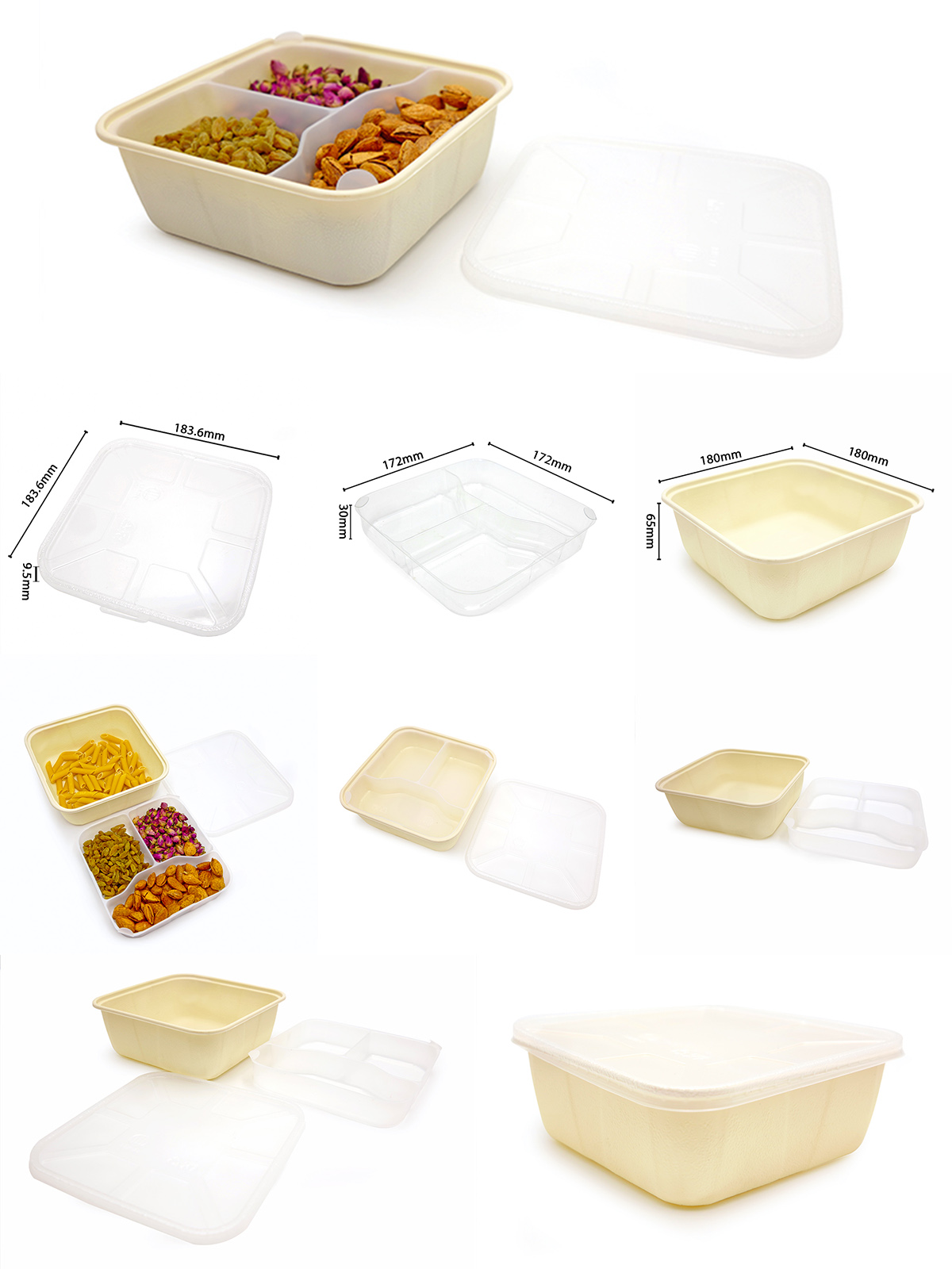 Dimensión | TAPA: 183,6*183,6*9,5 mm BANDEJA: 180*180*65 mm BANDEJA INTERIOR: 172*172*30 mm |