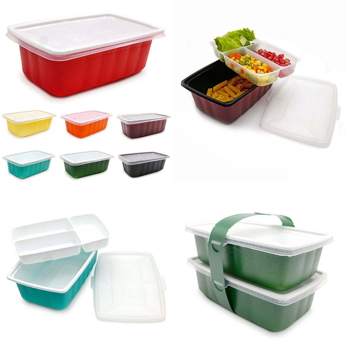 | Contenedores de lonchera | Catering de alimentos | Bolsa de polietileno y cartón, 10 juegos/bolsa, 2 bolsas/caja. 20 tapas + 20 bandejas + 20 bandejas interiores por caja ![]() |