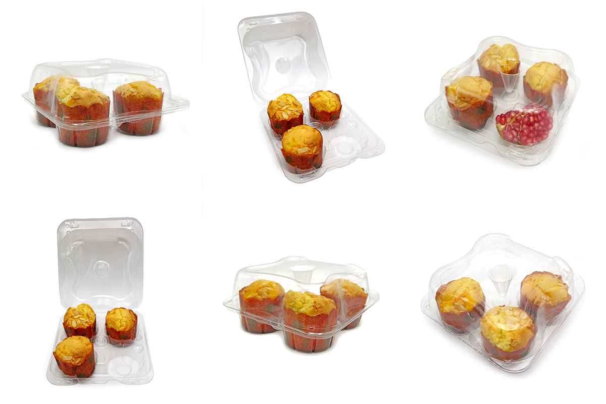 Aquí presentamos un diseño especial de 4 piezas de embalaje de panadería de frutas, caja de comida de plástico desechable con cubierta, una maravillosa adición a su oferta comercial mayorista.Este patrón de 4 piezas con cierre con bisagras es una buena opción para envases de panadería y fruta para llevar.Fabricada con plástico PET de calidad alimentaria, esta caja ofrece una solución práctica y económica para diversos envases de alimentos.