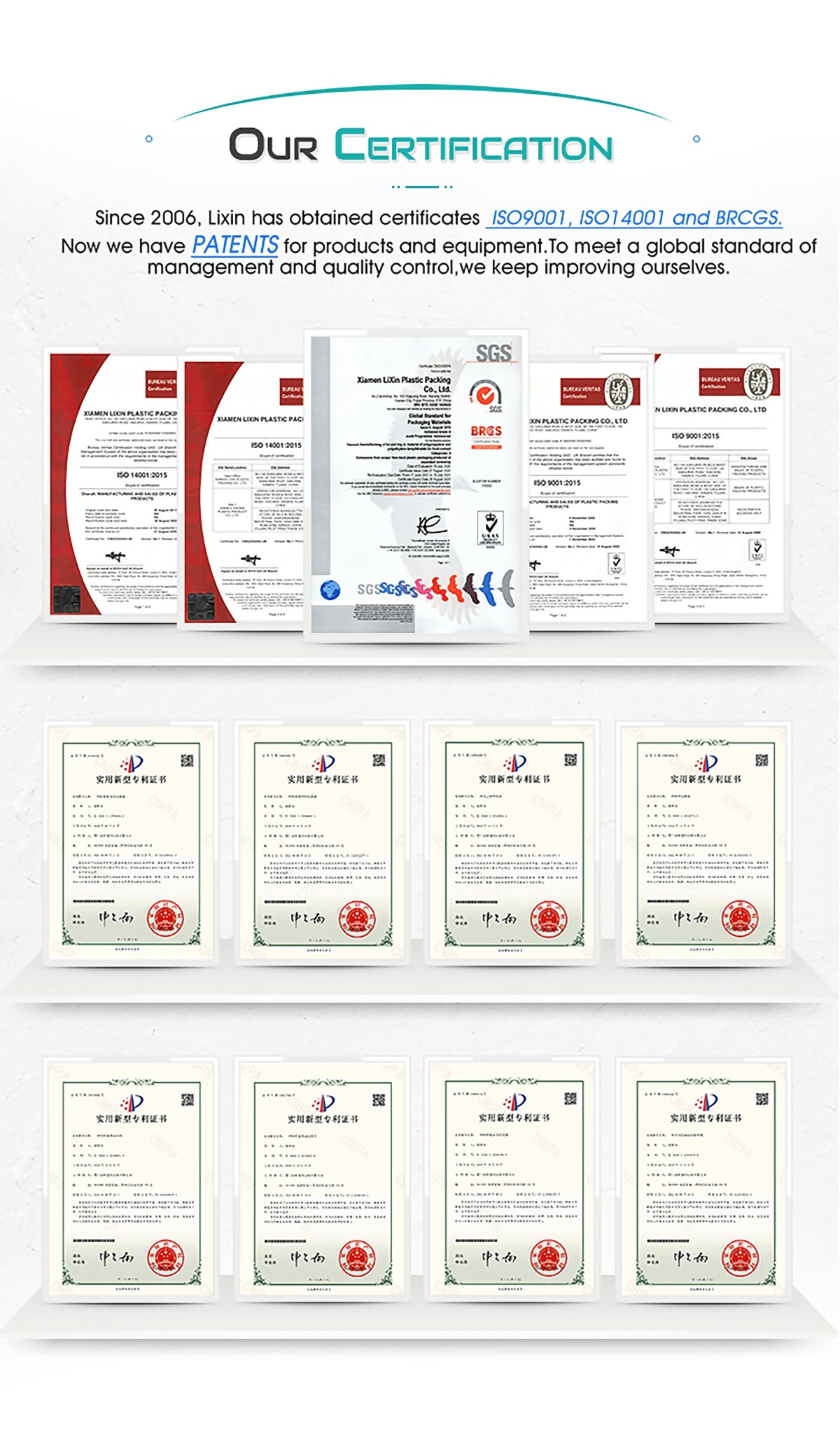 Como líder en el campo de los envases de plástico, Xiamen Lixin Plastic Packing Co., Ltd.se ha comprometido a proporcionar a los clientes soluciones de embalaje innovadoras y de alta calidad.Nuestros productos se utilizan ampliamente en envases de alimentos, envases electrónicos, envases industriales y muchos otros campos, y