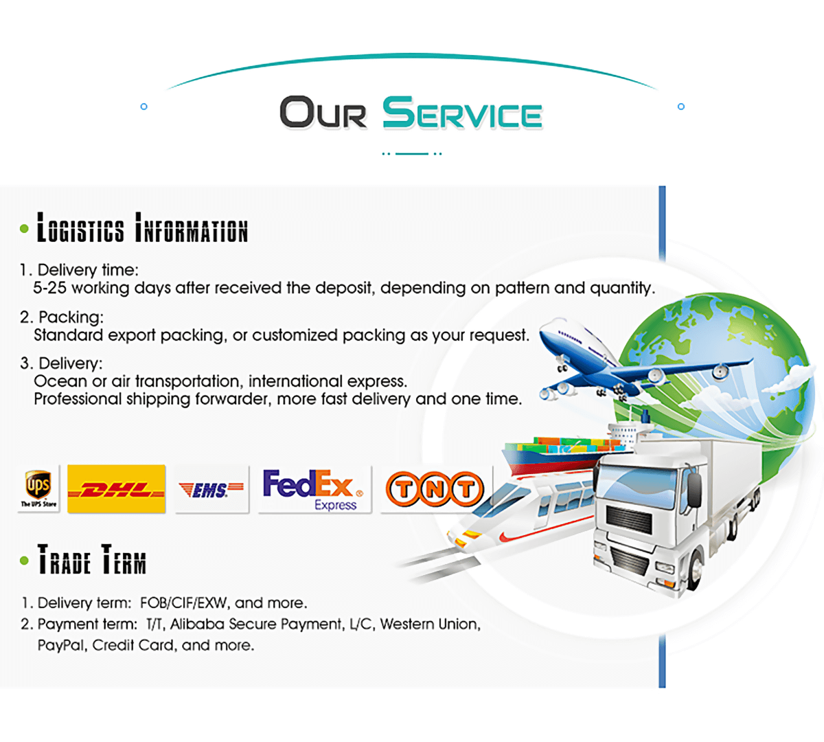 R: Simplemente denos una muestra, una imagen o un dibujo con el tamaño, el material y la cantidad del pedido, le ofreceremos los detalles que necesita.