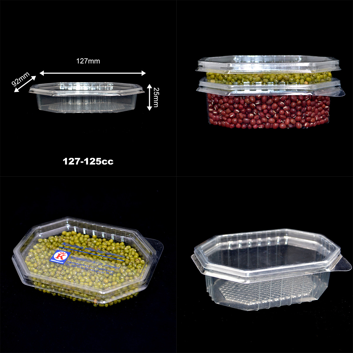 Artículo | Contenedor de almacenamiento de alimentos transparente plástico termoformado de 125 ml con tapa |